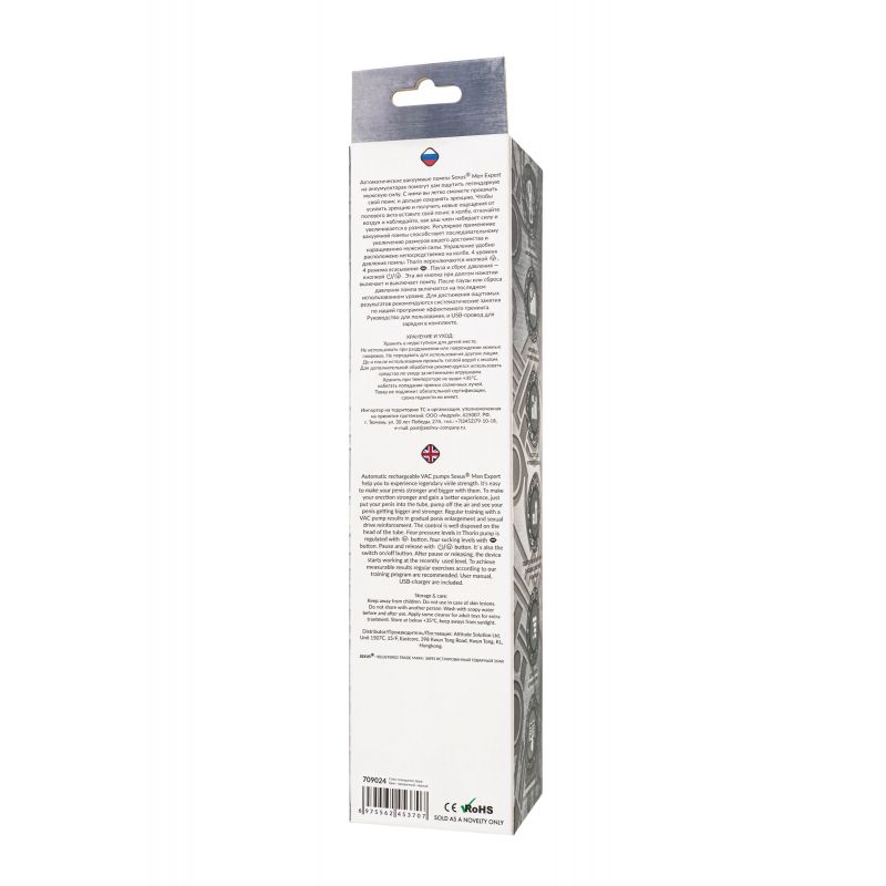 Ощутите мощь и силу с помощью автоматической вакуумной помпы Ivar от Sexus Men серии Expert! Эта инновационная помпа на аккумуляторе разработана для улучшения вашей эрекции и преодолении границ в вашей сексуальной жизни. Простое в использовании и эффективное устройство поможет вам достичь наилучших результатов. Просто вставьте ваш пенис в колбу, активируйте помпу и наблюдайте, как она создает вакуум, стимулируя кровоток в вашем члене. С регулируемыми уровнями давления и умной системой поддержания давления, вы сможете контролировать каждую тренировку. С удобным пультом управления, расположенным на колбе, вы легко сможете настроить интенсивность и длительность вашей тренировки. 3 уровня давления помпы Ivar переключаются кнопкой включения. После сброса давления (кнопка “пар”) умное устройство само откачает воздух до заданного уровня. Для вашего удобства в комплект входит USB-кабель для зарядки и подробное руководство по использованию. Удлиненная колба до 22,5 см обеспечивает комфортное использование. С тренировочной программой и цифровым дисплеем, вы сможете отслеживать свой прогресс и достигать новых высот в своей сексуальной жизни. Регулярное использование вакуумной помпы Ivar от Sexus Men позволяет: сделать эрекцию более стабильной, крепкой и продолжительной, последовательно увеличить длину и диаметр полового члена, повысить сексуальную выносливость и половое влечение, поднять уверенность в своих возможностях и совершать новые сексуальные подвиги. Рабочая длина - 22 см.