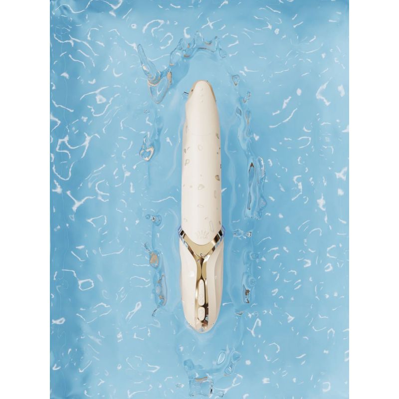 Бежевый вибростимулятор с имитацией оральных ласк и функцией нагрева Eve