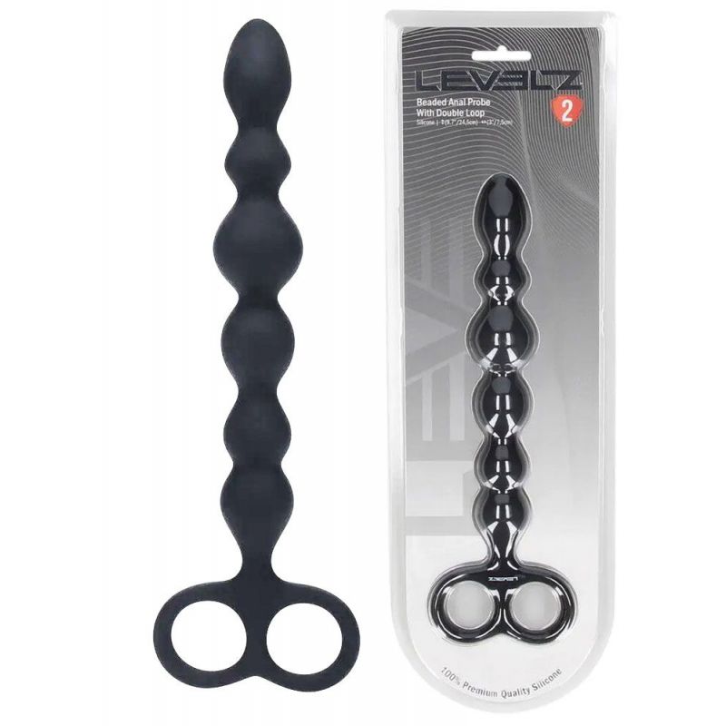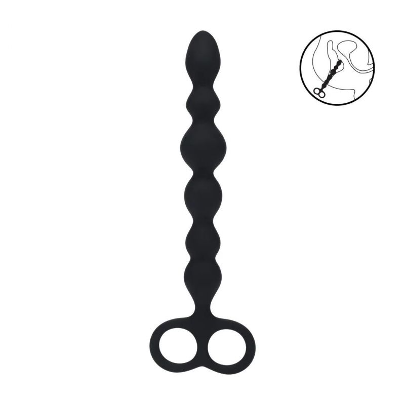 Черная анальная цепочка Beaded Silicone Anal Probe with Double Loop - 24 см.
