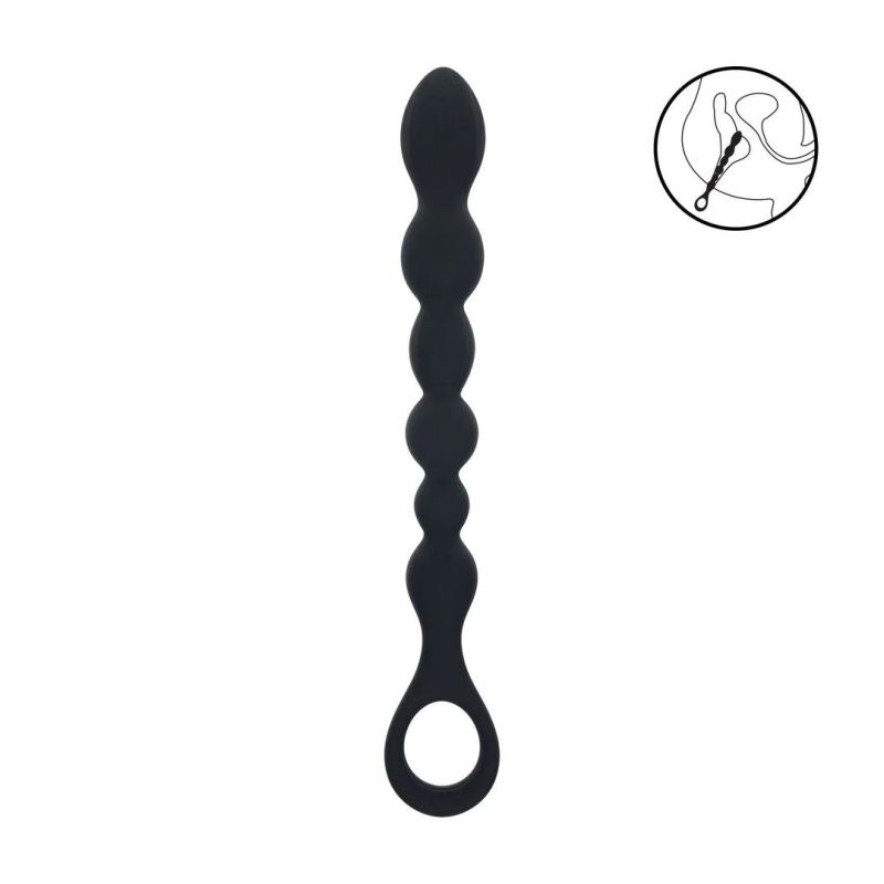 Черная силиконовая цепочка Beaded Snake Silicone Anal Probe with Loop - 26 см.