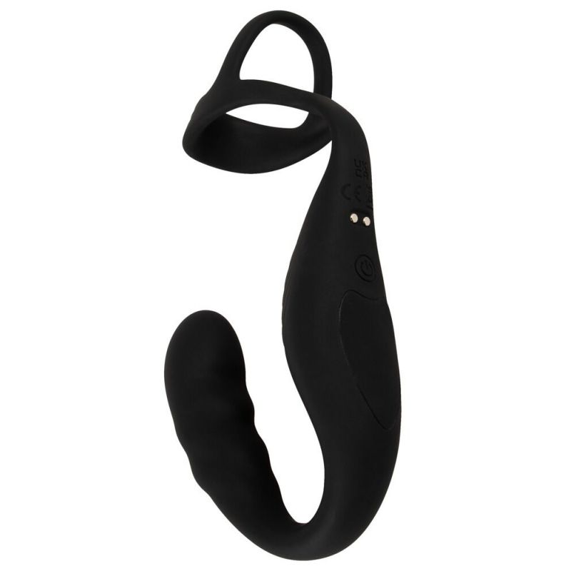 Черное эрекционное кольцо со стимуляцией промежности и анальной пробкой Cock Ring with RC Prostate Plug