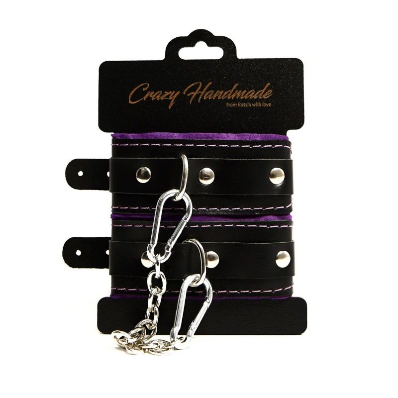 Черно-фиолетовые скругленные наручники с мягкой подкладкой