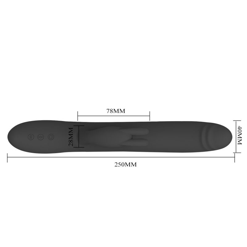 Многоскоростной перезаряжаемый вибратор. Имеет клиторальный стимулятор в виде зайчика. Вращающиеся шарики снабжены 4ю режимиами ротации. Гладкая поверхность. Материал - силикон. Имеет 7 режимов вибрации, управление производится при помощи сенсорных кнопок у основания игрушки. Рабочая длина - 16 см.