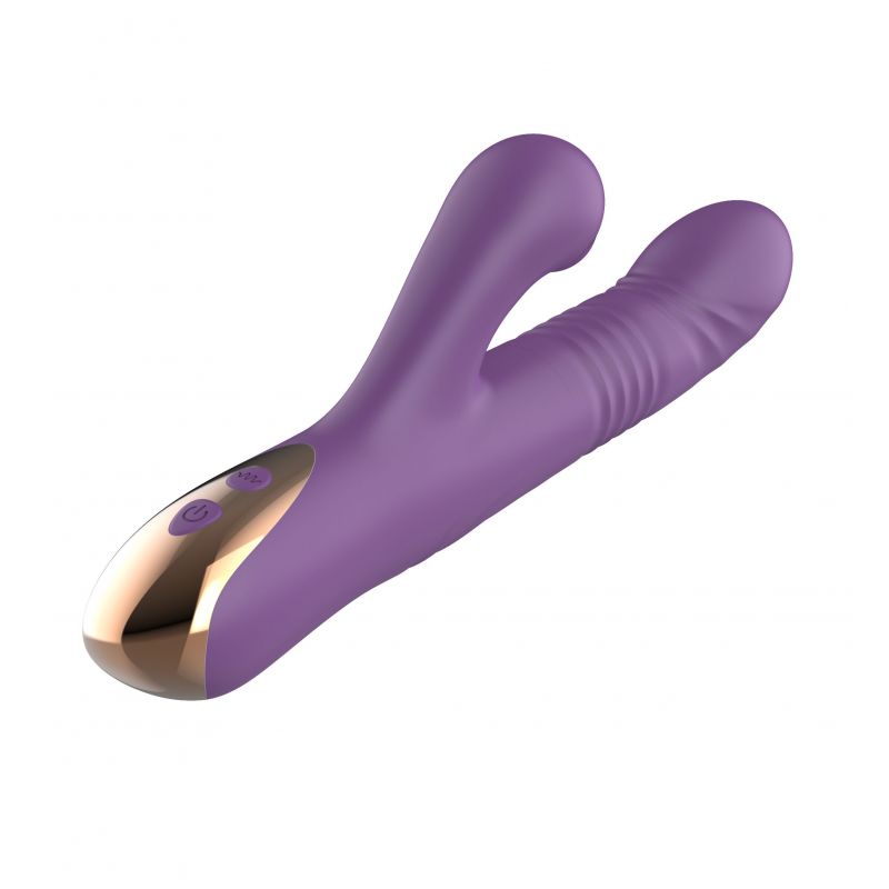 Фиолетовый вибратор-кролик с возвратно-поступательной стимуляцией