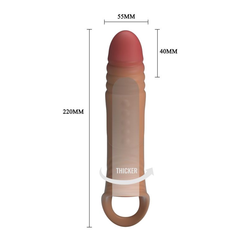 Насадка на пенис – это отличное и безопасное средство увеличить половой член, продлив при этом секс и подарив партнерше море приятных возбуждающих ощущений. Этот интим-товар выполнен из качественного эластичного материала, способного растягиваться под размер пениса, плотно прилегая к нему и не соскальзывая. Насадка на пенис придаст уверенности мужчине и позволит ему выпустить наружу страстного самца. Интим-товар этого производителя довольно популярен среди представителей мужского пола разного возраста.