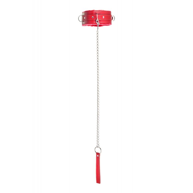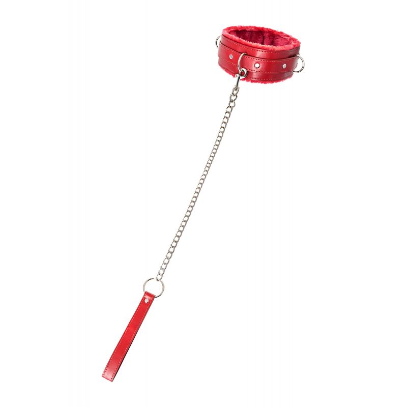 Ошейник яркого красного цвета с металлической отделкой говорит не об агрессии. Этот ошейник говорит о страсти, которую можно проявить, но только с разрешения Доминанта. Подкладка из искусственного меха немного смягчит давление на шею, поэтому выбор этого ошейника можно считать проявлением любви и заботы Доминанта к своему рабу. Ведь в мире БДСМ ошейник — это не только своеобразный ограничитель свободы, но и символ принадлежности своему Хозяину. Пристегивающийся по центру поводок заставляет следовать за Хозяином, куда бы тот ни пошел. Размер регулируется с помощью металлической пряжки, которая служит одновременно декоративным элементом, и добавляет образу немного хардкора. Длина ошейника - 43,5 см, ширина - 5,5 см. Длина поводка - 80 см.