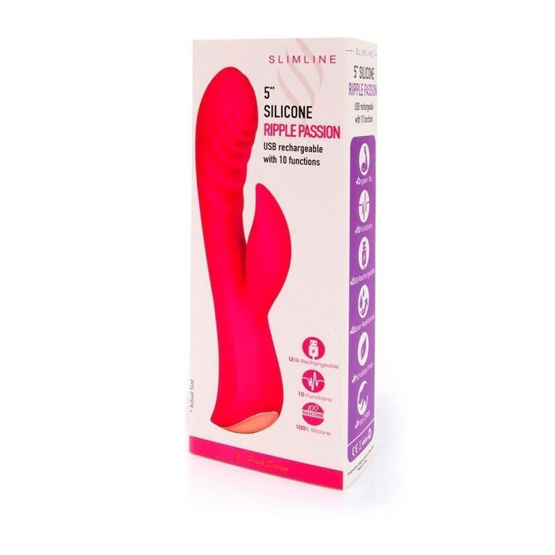 Красный перезаряжаемый вибратор-кролик - 19,1 см.