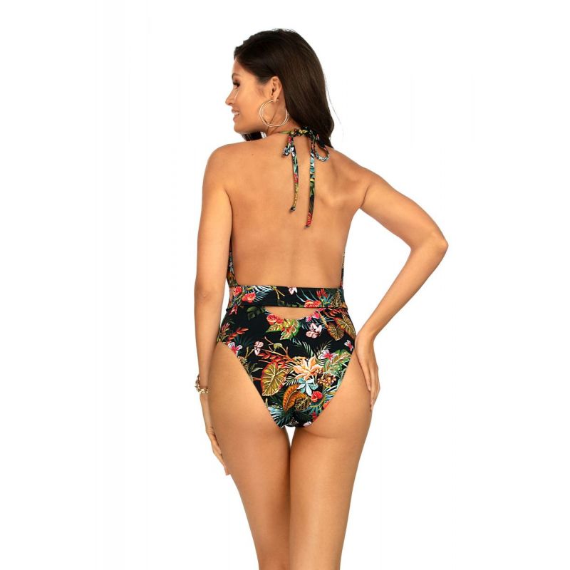 Совместный купальник. Лиф купальника мягкий, спинка открыта, тонкие бретели завязываются на шее сзади, спереди глубокое декольте, трусики слип с высокими проймами для ног. Купальник продублирован стрейч-подкладкой. Внимание: европейские размеры! См. размерную сетку производителя.