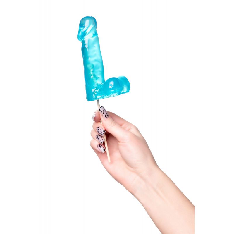 Голубой леденец в форме члена со вкусом блю кюрасао - 173 гр.
