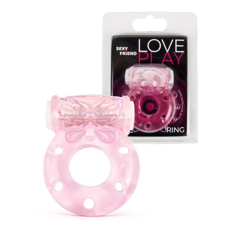 Розовое эрекционное виброкольцо с бабочкой