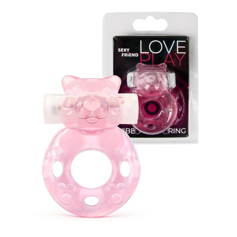 Розовое эрекционное виброкольцо в форме мишки