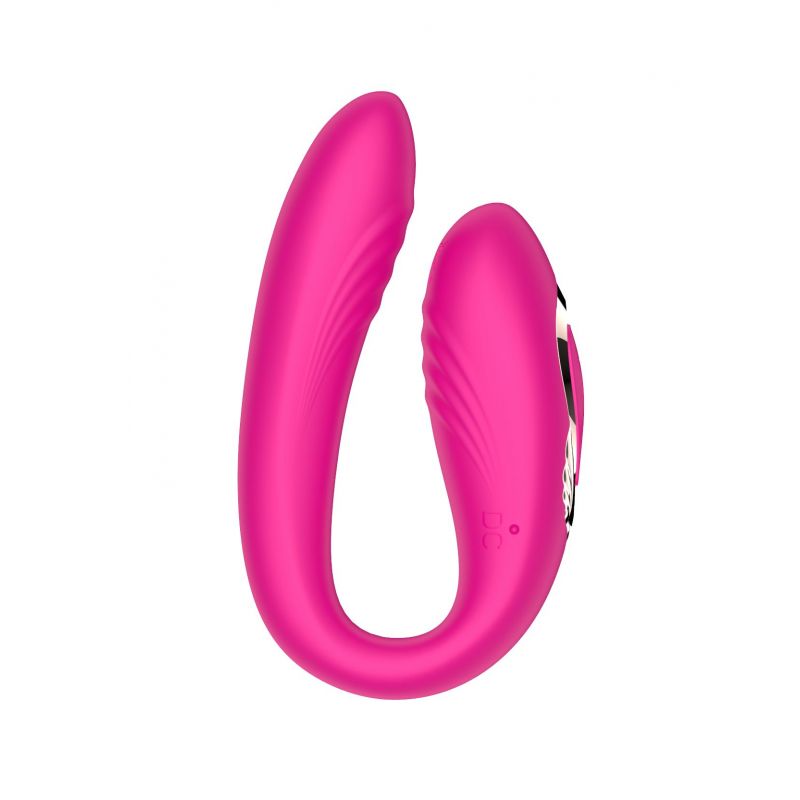 Розовый U-образный вибратор с вращающейся вагинальной частью. Воздействует одновременно на точку G и клитор. Режимы переключаются при помощи пульта ДУ.