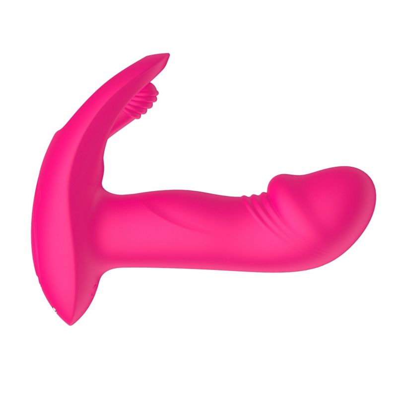 Розовый вагинально-клиторальный вибратор c функцией фингеринга. 10 режимов вибрации, 10 режимов фингеринга. С пультом ДУ.