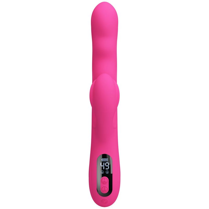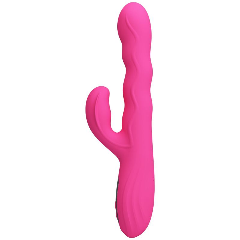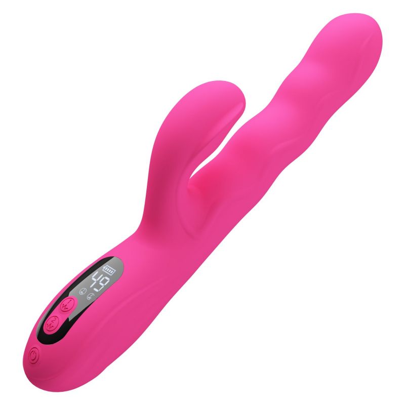 Розовый вибростимулятор-кролик с волновыми движениями Winters. 9 режимов вибрации, 4 режима волн. LED-дисплей. Рабочая длина - 14 см.