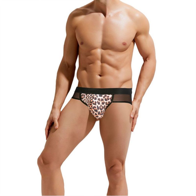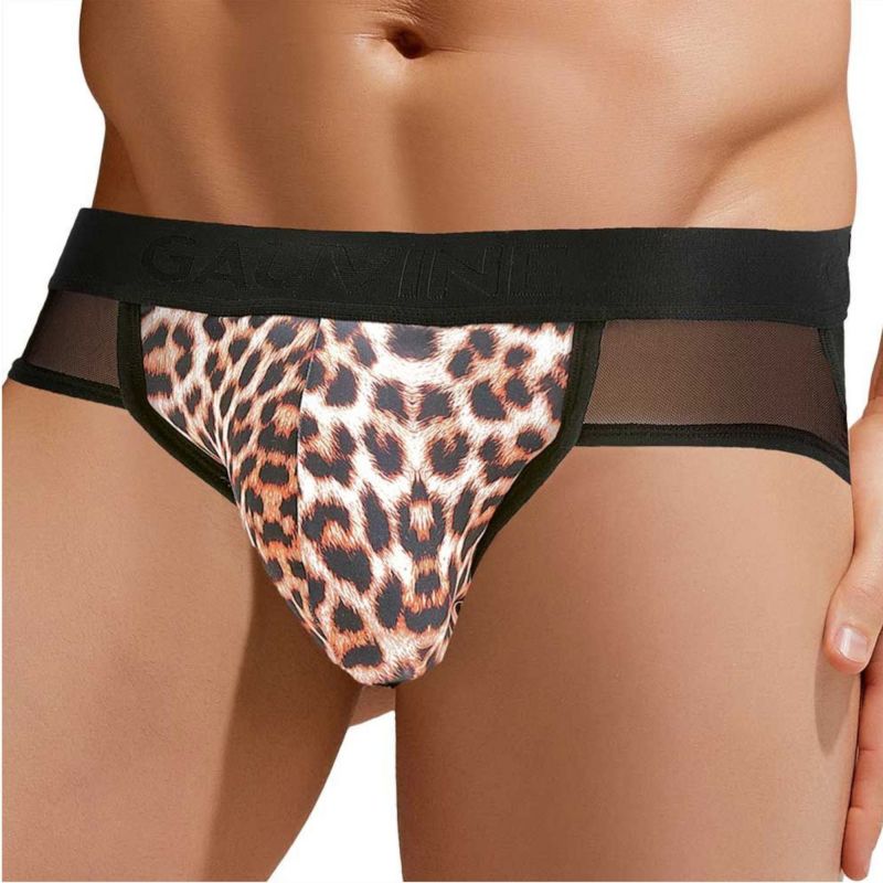 Сексуальные мужские трусы-джоки с леопардовой вставкой по центру
