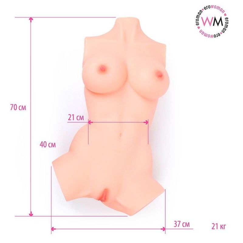 Секс-игрушка с потрясающими формами сведёт с ума и подарит незабываемое удовольствие. Роскошная грудь с хорошо очерченными сосками, влагалище и анальное отверстие с рельефной внутренней поверхностью, приятный на ощупь материал дадут ощущение максимальной реалистичности. Интимный аксессуар подходит для вагинального и анального секса. Благодаря отсутствию внутреннего каркаса, изделие обладает хорошей эластичностью.