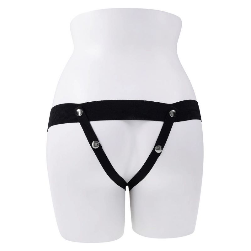 Телесный полый страпон с черными эластичными ремешками Our First Hollow Strap On