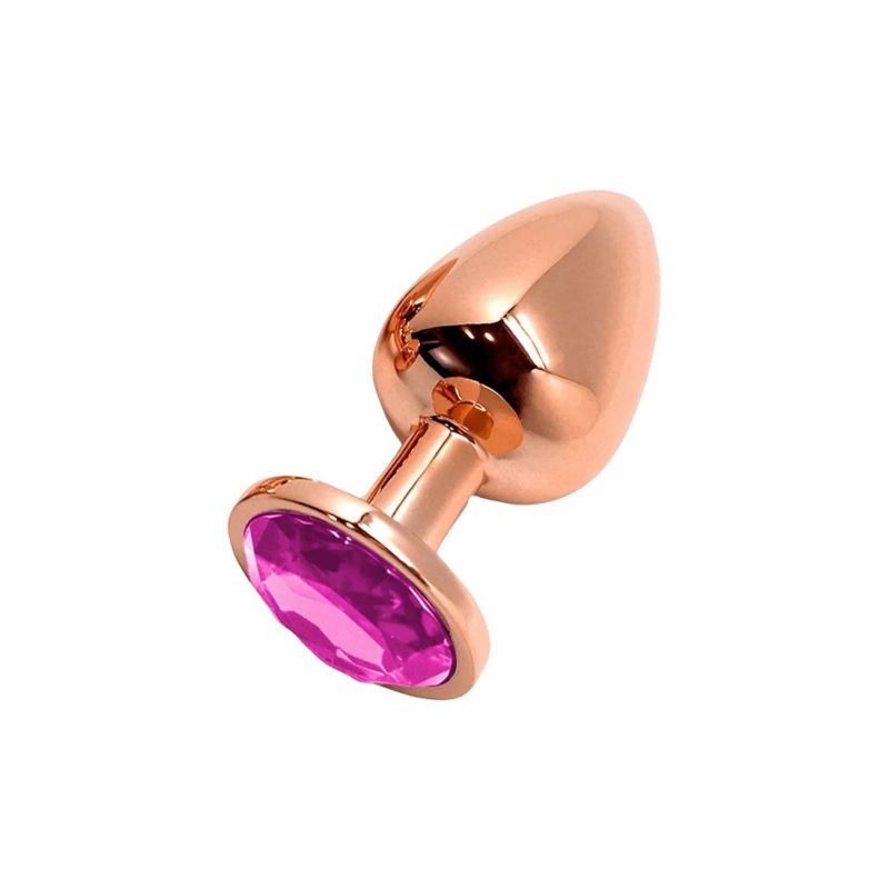 Золотистая анальная втулка Wooomy Tralalo M с розовым кристаллом - 8 см.
